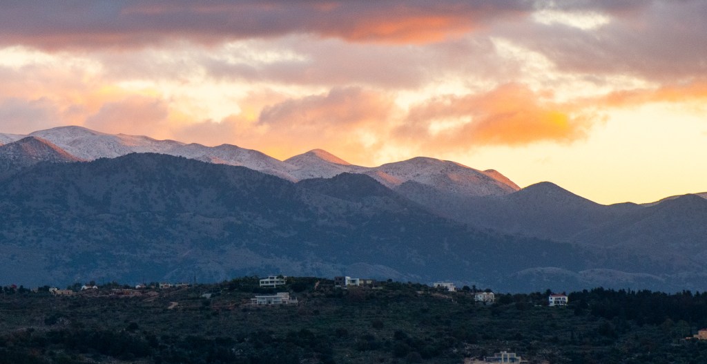 We spent a month in Crete to see if that is where we would want to spend a few years living overseas after recently retiring. We found an Airbnb in the hills overlooking the ever changing White Mountains.
