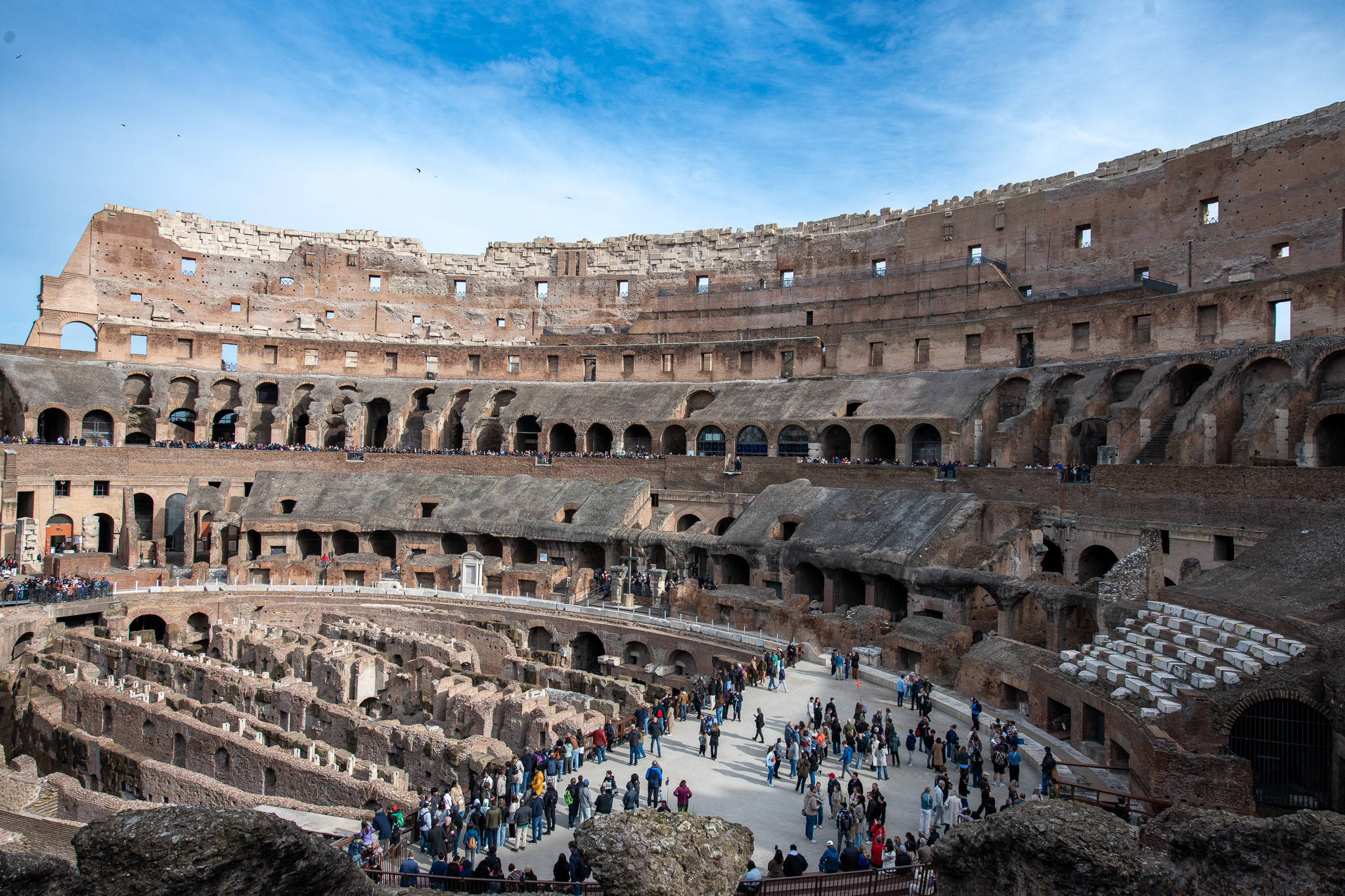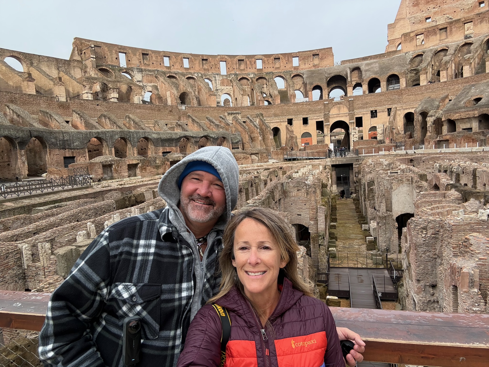 The sun was not winning against the heavy morning air, but we arrived in time to find the entry line, taking a few moments to rub the sleep out our eyes. As the gates opened we shuffled into the depths of the Colosseum, not knowing where to go. Signs pointed us to the arena floor and we leaned up against the guard rail and looked out.