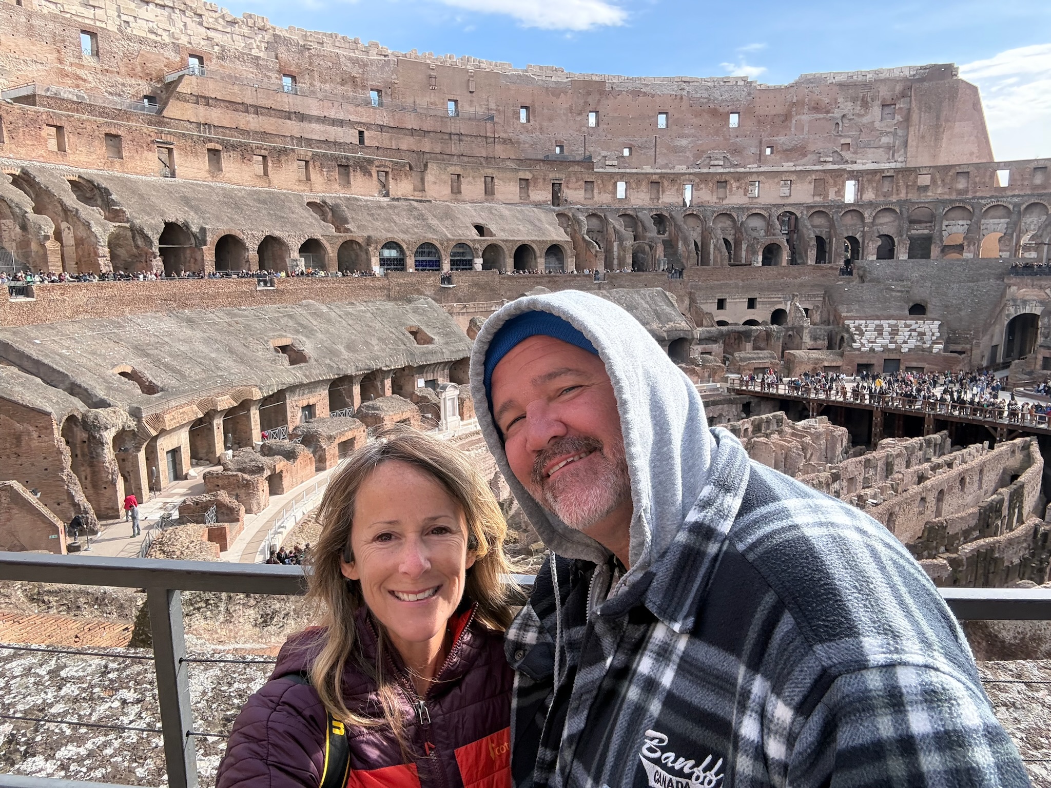 As the sun broke through the clouds we found ourselves waking to the travertine structure that remains. We are thankful the Colosseum was preserved and able to give us a moment to glance back at what was. For 450-500 years this very Colosseum was used for public spectacles, such as gladiatorial combat and animal hunts. Inaugurated by Emperor Titus in 80AD. It attracts around 7 million visitors a year.